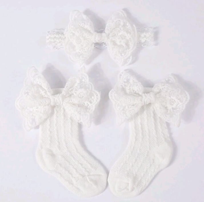 Baby Girls White Frill Socks & Headband Set