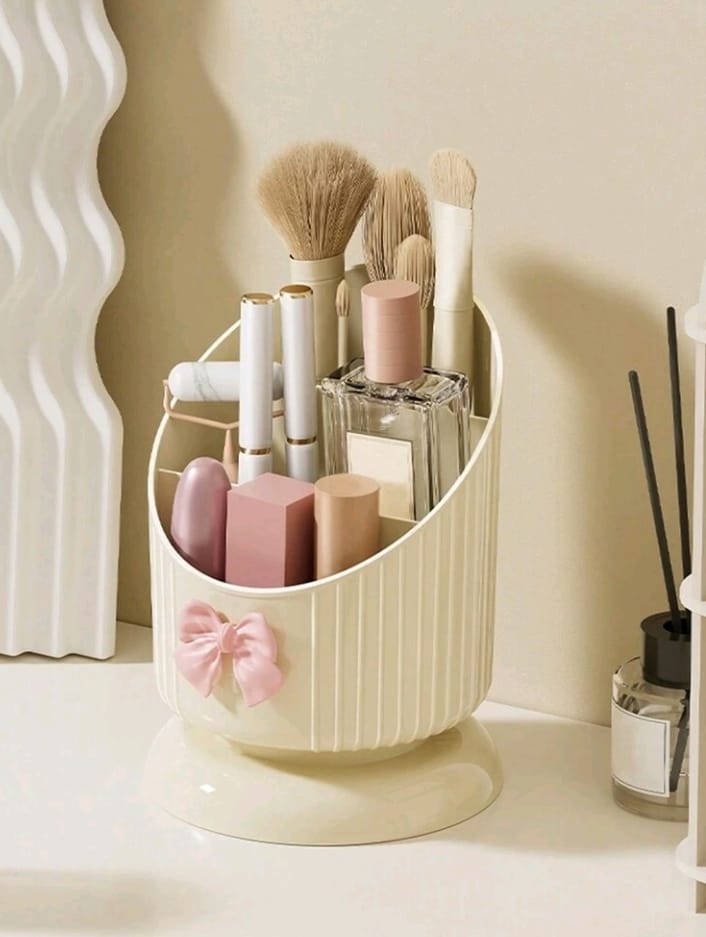 Beige Bow Cosmetic Organizer