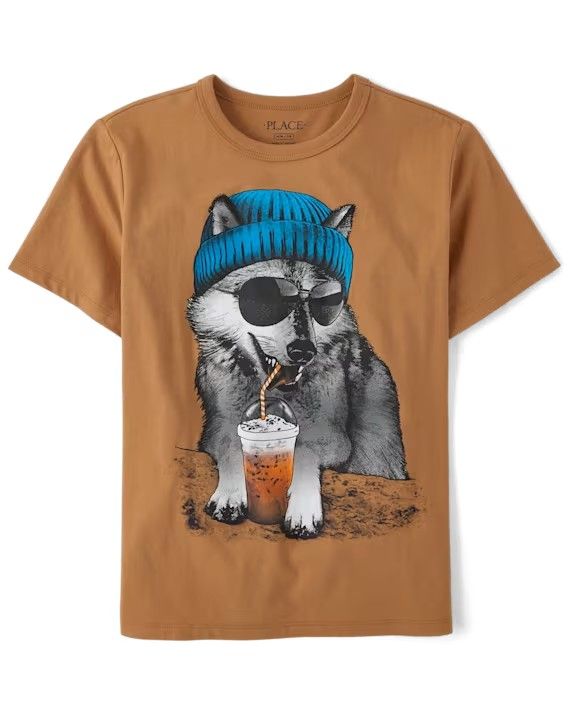 Children’s Place Boys Wolf Beanie Graphic Tee