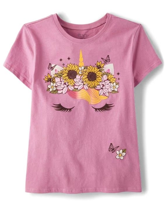 Children’s Place Girls Flower Crown Unicorn Graphic Tee