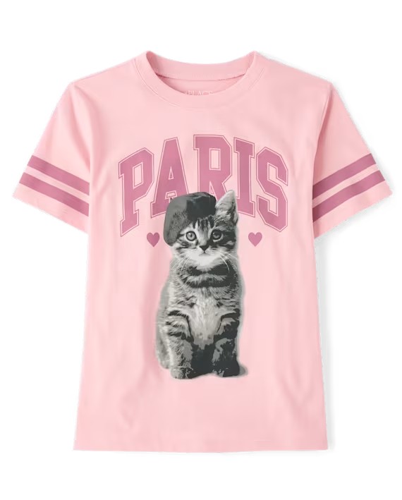 Children’s Place Girls Oversized Cat Paris T- Shirt