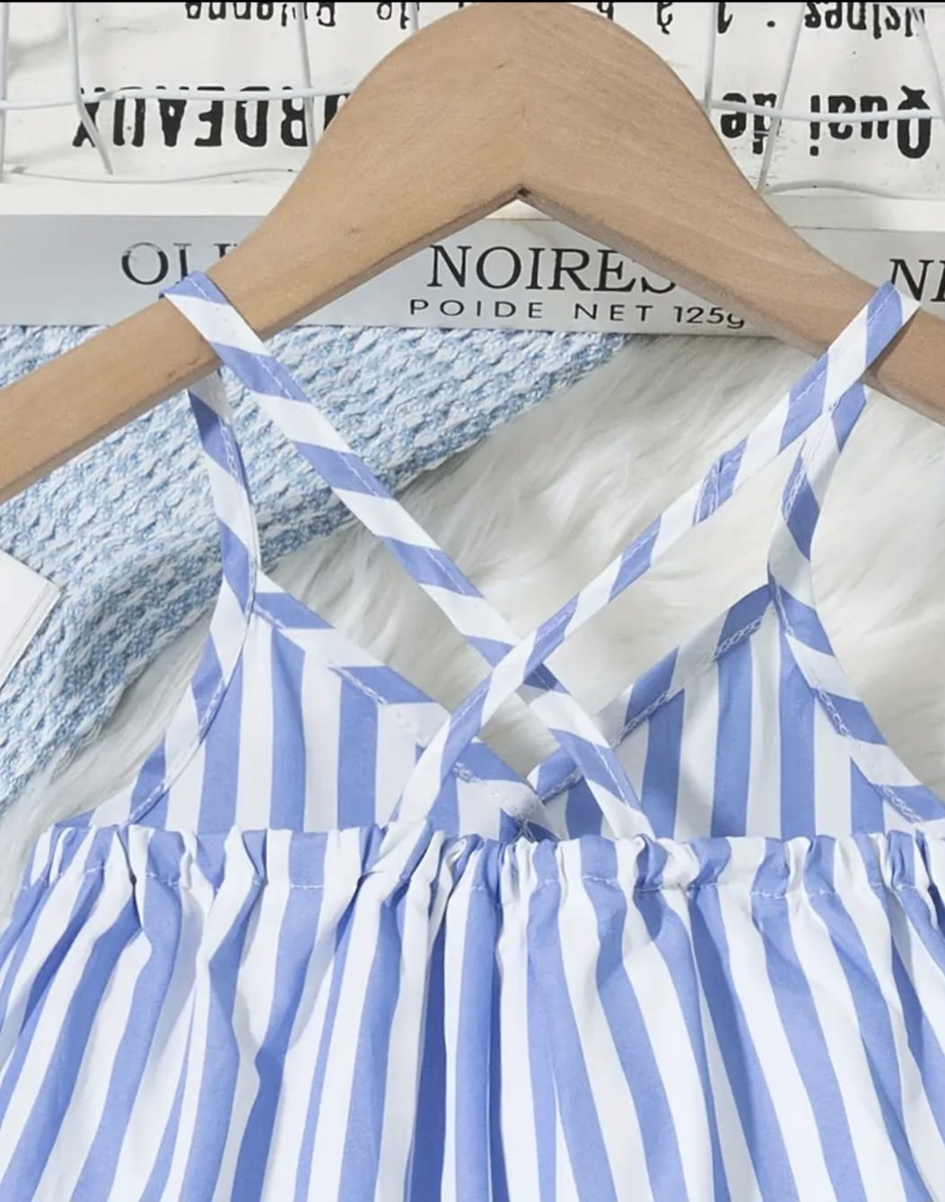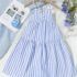 Girls Blue Stripped Layered Spaghetti Strap Dress