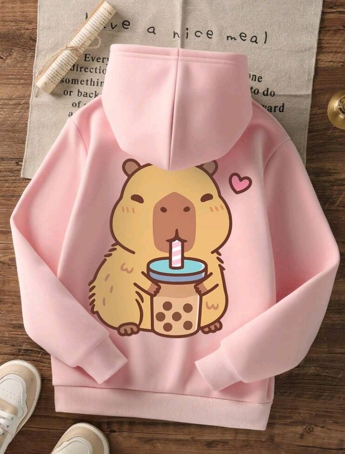 Girls Capybara Printed Pull Over Hoodie quantity