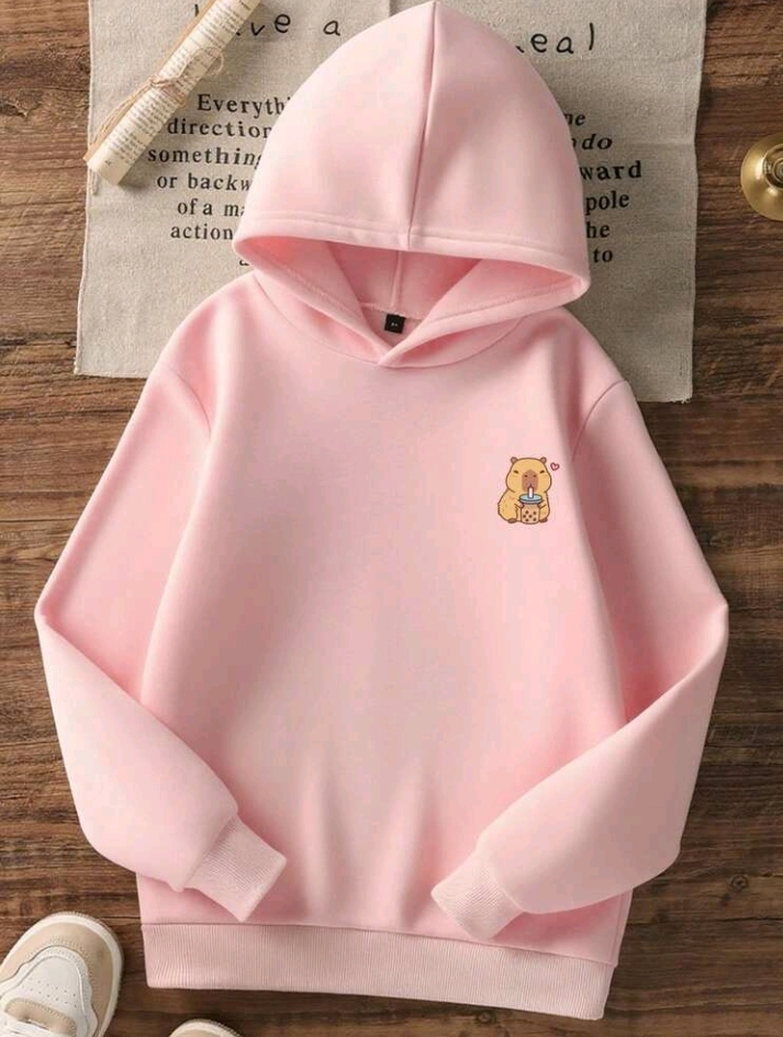 Girls Capybara Printed Pull Over Hoodie