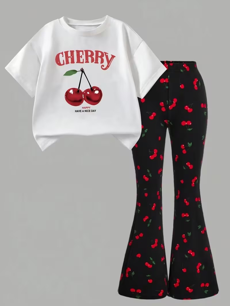 Girls Cherry Print Top & Flare Leggings Set