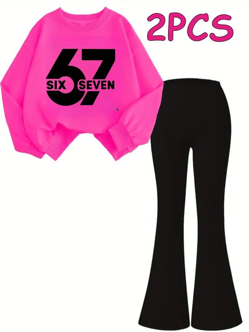 Girls Oversized 67 Sweater and Flare Leggings Set
