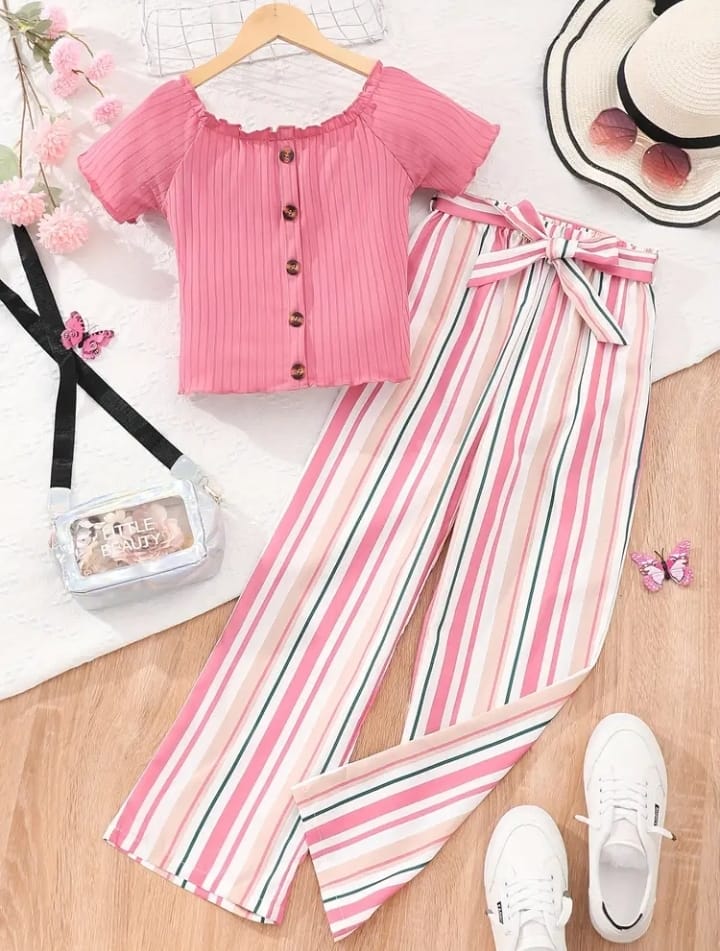 Girls Short Sleeve Top & Striped Pants 2 – Piece Set