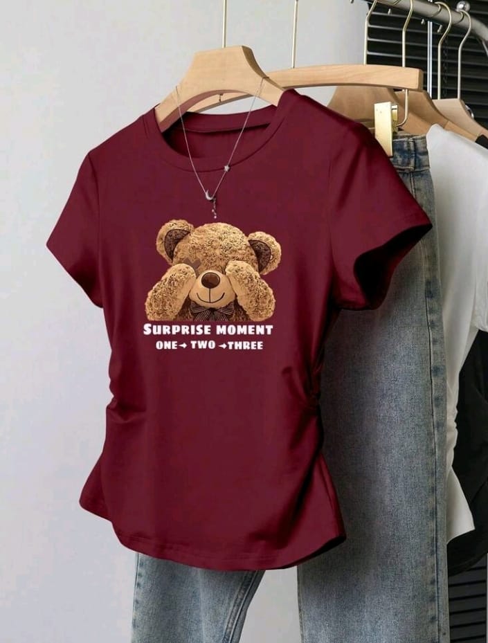 Shein Girls Burgundy Bear Tee