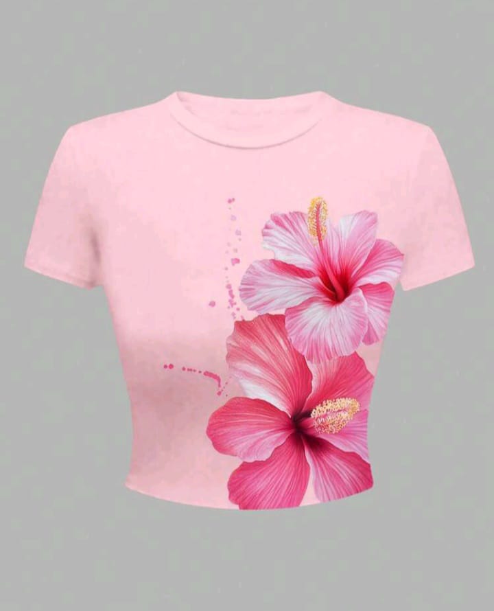 Shein Pink Hibiscus Cropped Slim Fit T-Shirt
