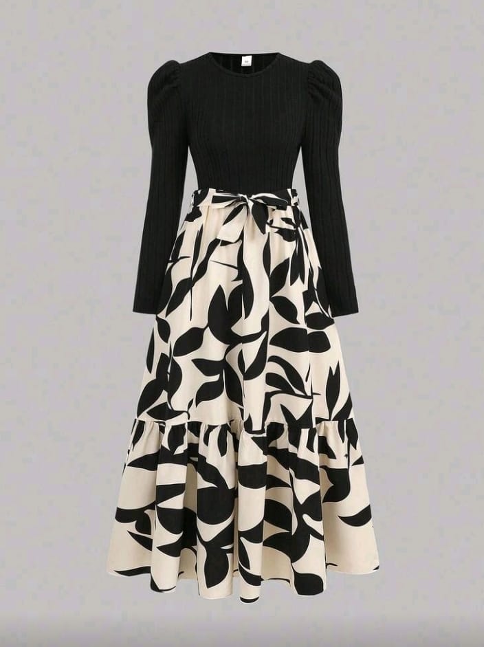 Shein Teen Girls Black Puff Sleeve Floral Dress