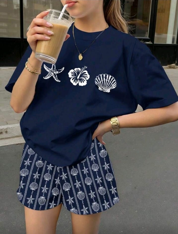 Teens Girls Round Neck Tee & Shorts 2 – Piece Set