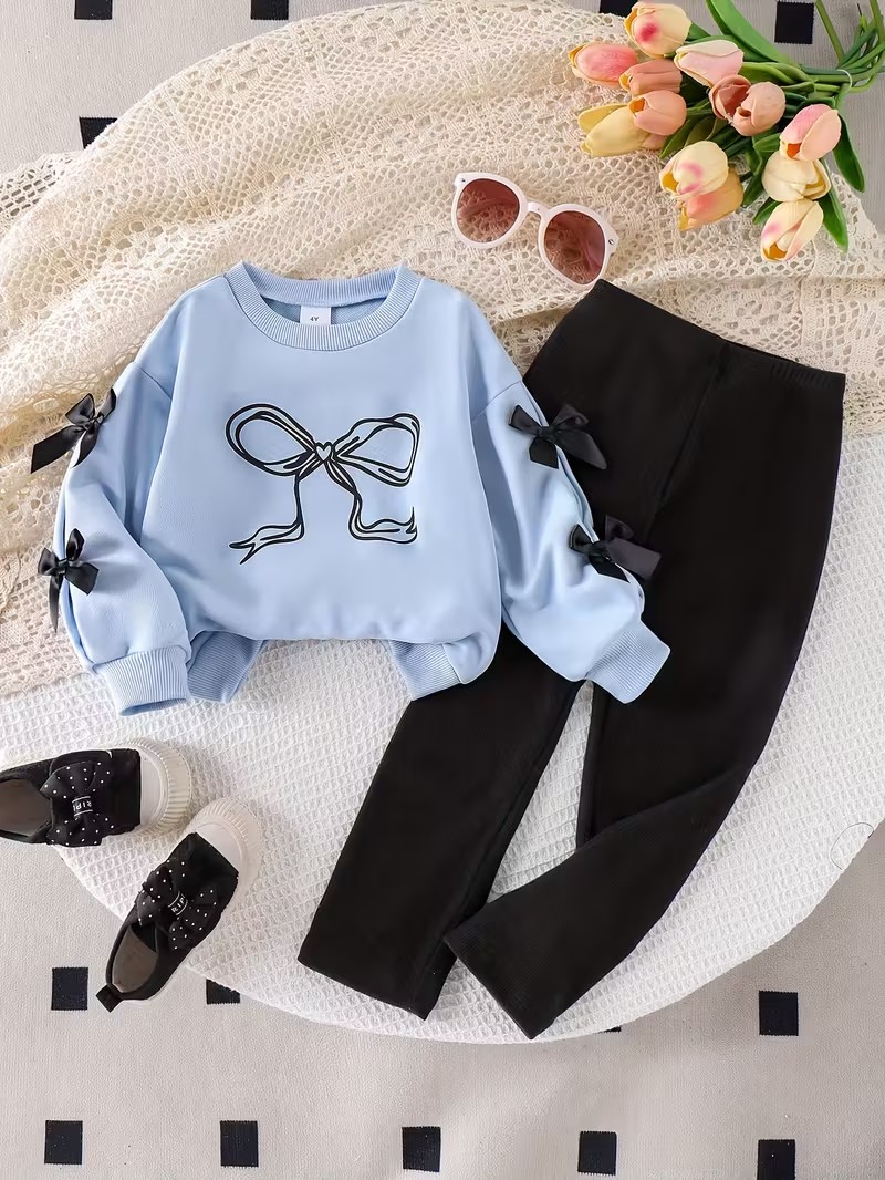 Toddler Girls Black Bow Sweater Top & Pants Set