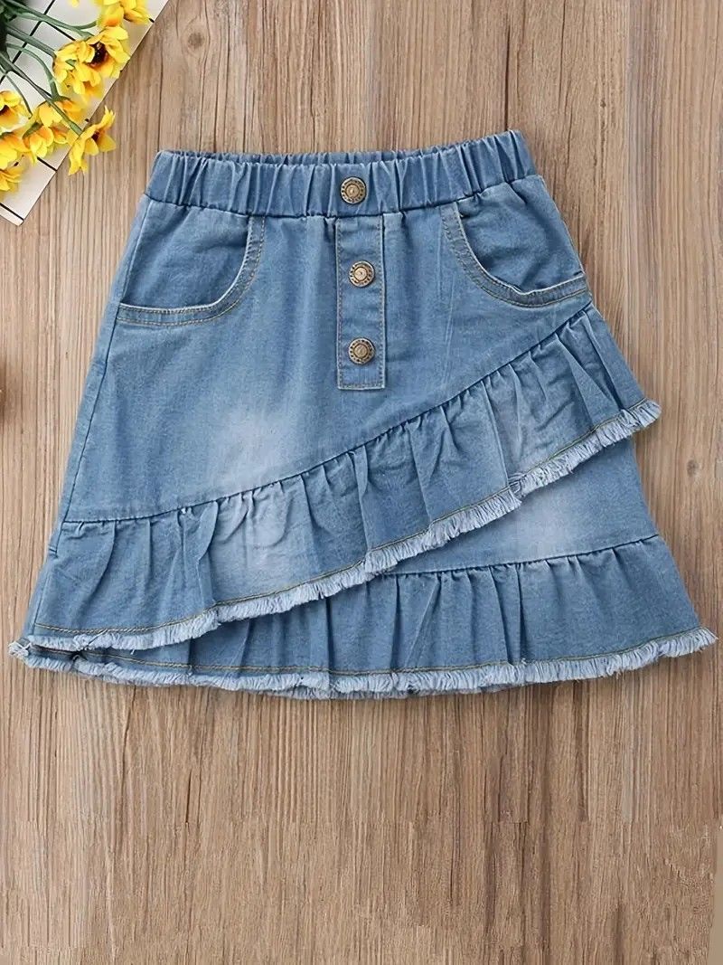 Toddler Girls Ruffle Denim Skirt