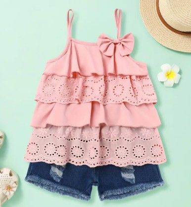 Toddler Girls Strapless Ruffle Top & Denim Shorts Set